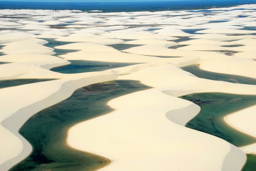 Danau-danau gurun yang indah ini terletak di Lençóis Maranhenses National Park, Maranhao, Brasil. Terbentuk sebagai bagian dari sistem danau air tawar yang berasal dari hujan selama enam bulan pertama setiap tahun dan kemudian secara bertahap akan menguap dan air tahun depan akan kembali lagi. Di beberapa danau, ada vegetasinya, sementara yang lain hanya tandus. Selengkapnya baca disini